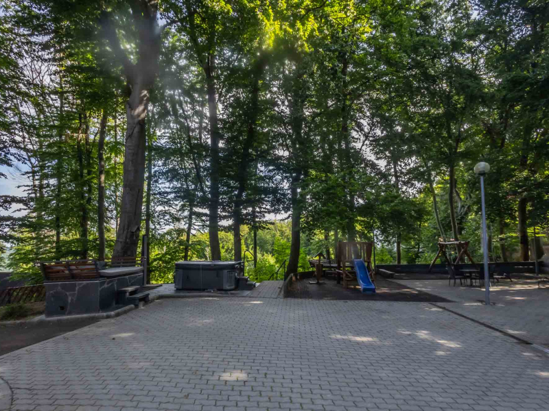 A háromszintes épület elbűvölő természeti környezetben, háromcsillagos körülményekkel várja a nyugalomra, pihenésre vágyókat, az aktív kikapcsolódás szerelmeseit és a csapatösszetartásra érkezőket.