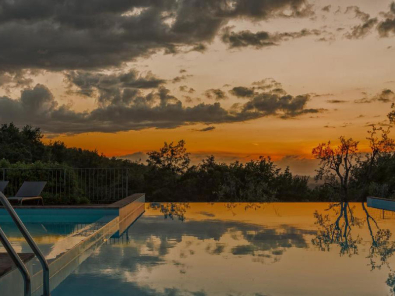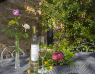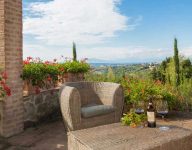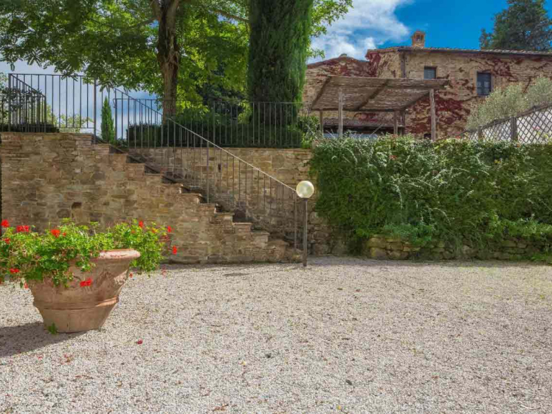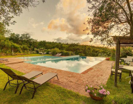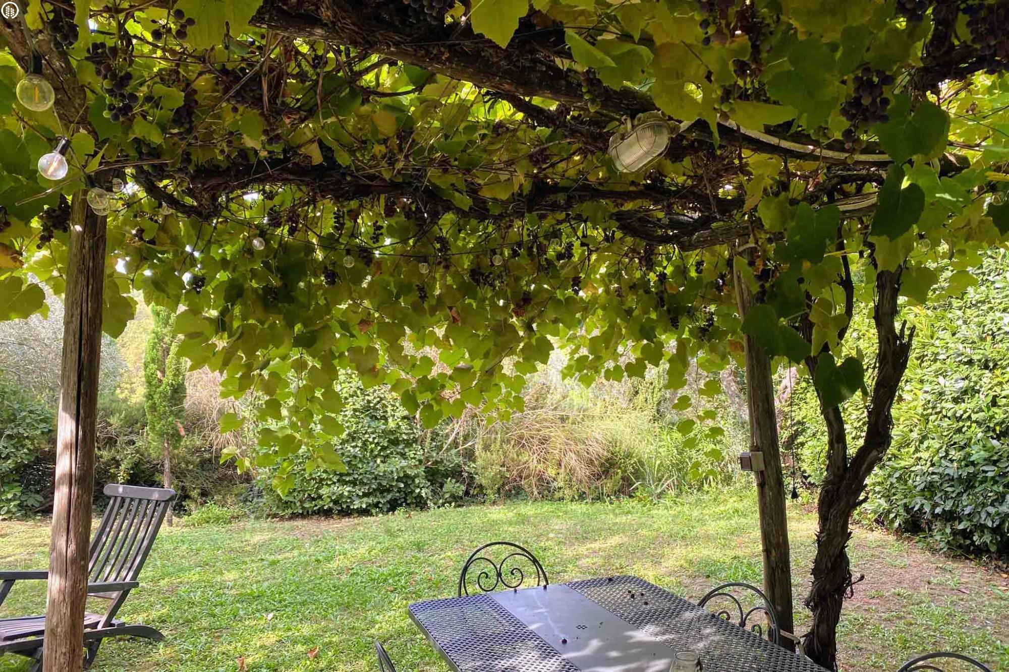 Az apartmanhoz tartozó privát kertben virágoznak a rózsák, mellettük pedig különböző fűszernövények illatoznak. A teraszt szőlőültetvények veszik körbe, melyek felejthetetlen látványt nyújtanak, miközben a verandán pihenünk, vagy egy késő délutáni vacsorát fogyasztunk el a naplementében. A medencéhez vezető ösvényt virágok szegélyezik. Ahogy elindulunk irányába, szemünk elé tárul a medencéhez tartozó terasz napozóágyakkal, a gyerekeknek játszótérrel és lugassal. Kanyargós ösvényeken lehet eljutni az olajfaligetekbe, erdőkbe, sáfrányokkal teli területekre.