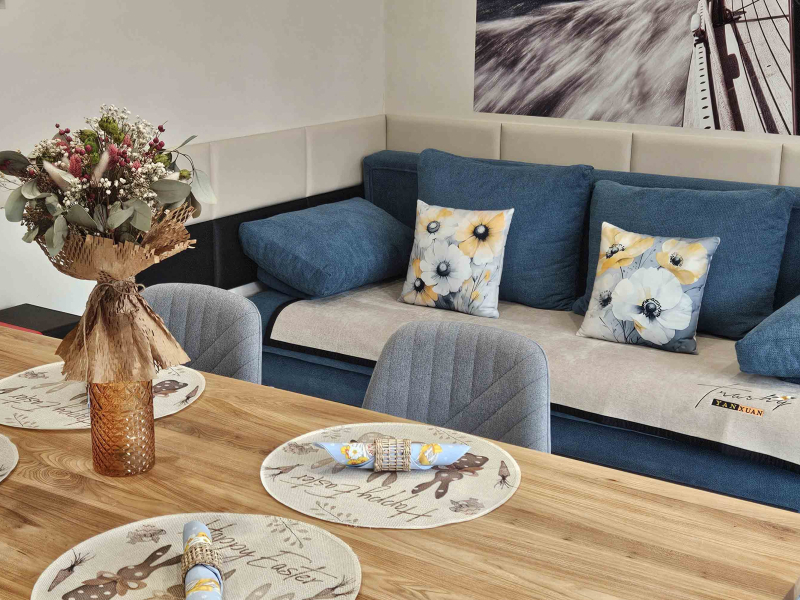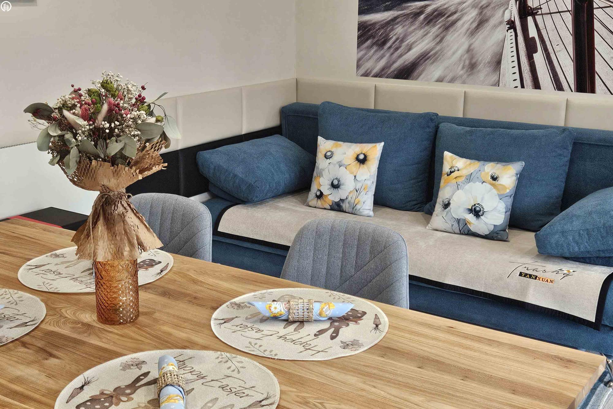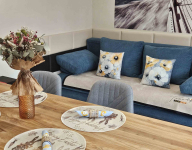 A konyha és a nappali mindkét apartmanban egy légtérben található, ahol kihúzható kanapén további 2 fő tud helyet kapni. A nappali helyiségből nyílik a fürdőszoba.