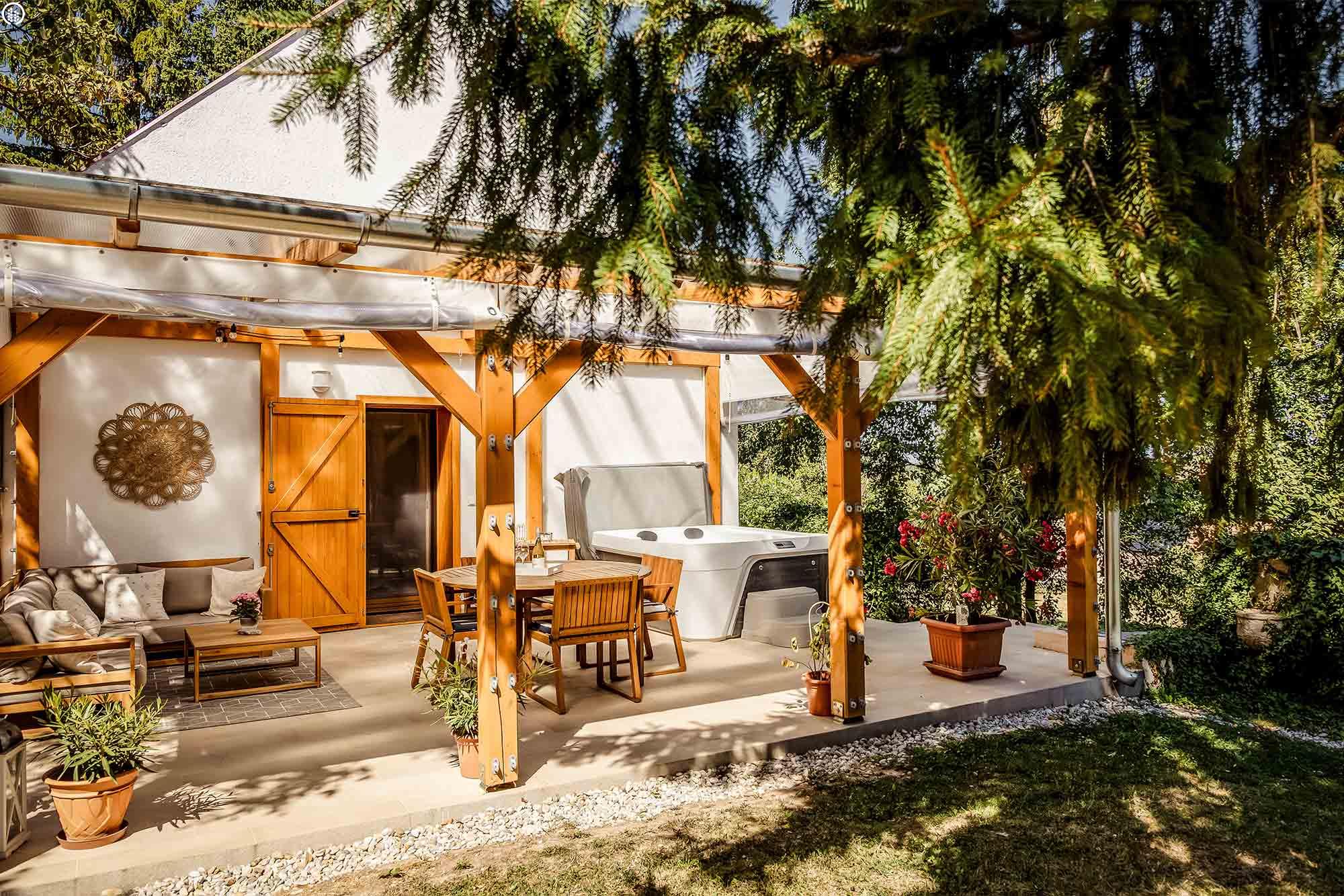 Ebben a házikóban stílusos és rusztikus terek, ropogó tűz, jakuzzi, finn szauna, madárcsicsergés és falusi nyugalom vár. Az óriás kert és a szabadtéri tűzrakóhely csak a Tiétek!