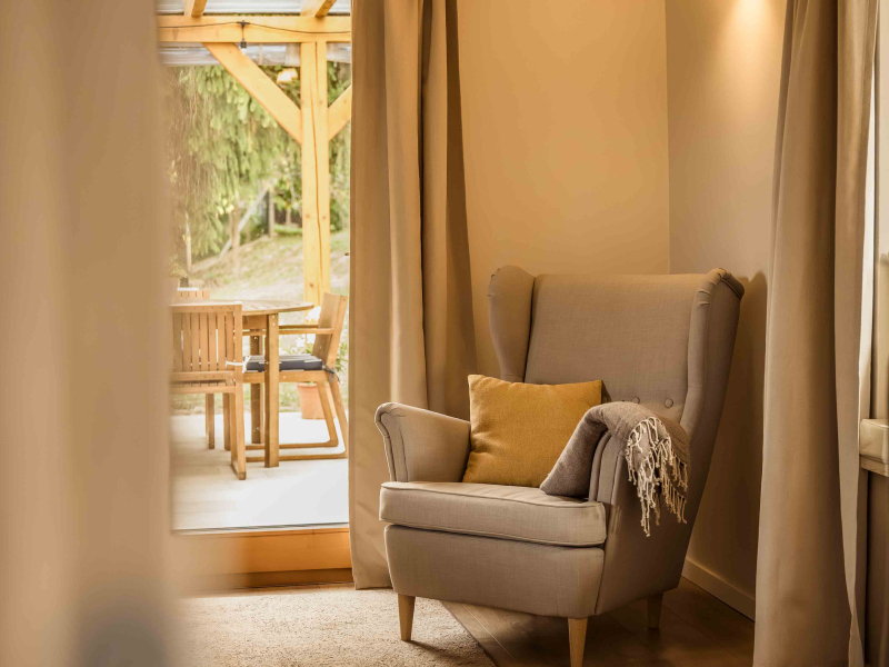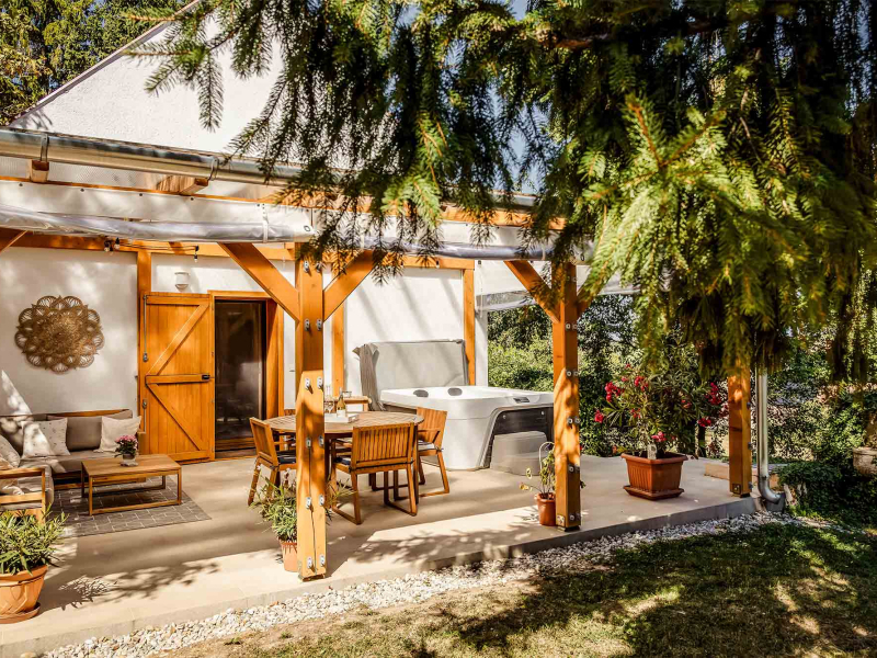 A házikó egy romantikus bakonyi falucskában, a feltöltő pihenésnek szentelve került kialakításra.