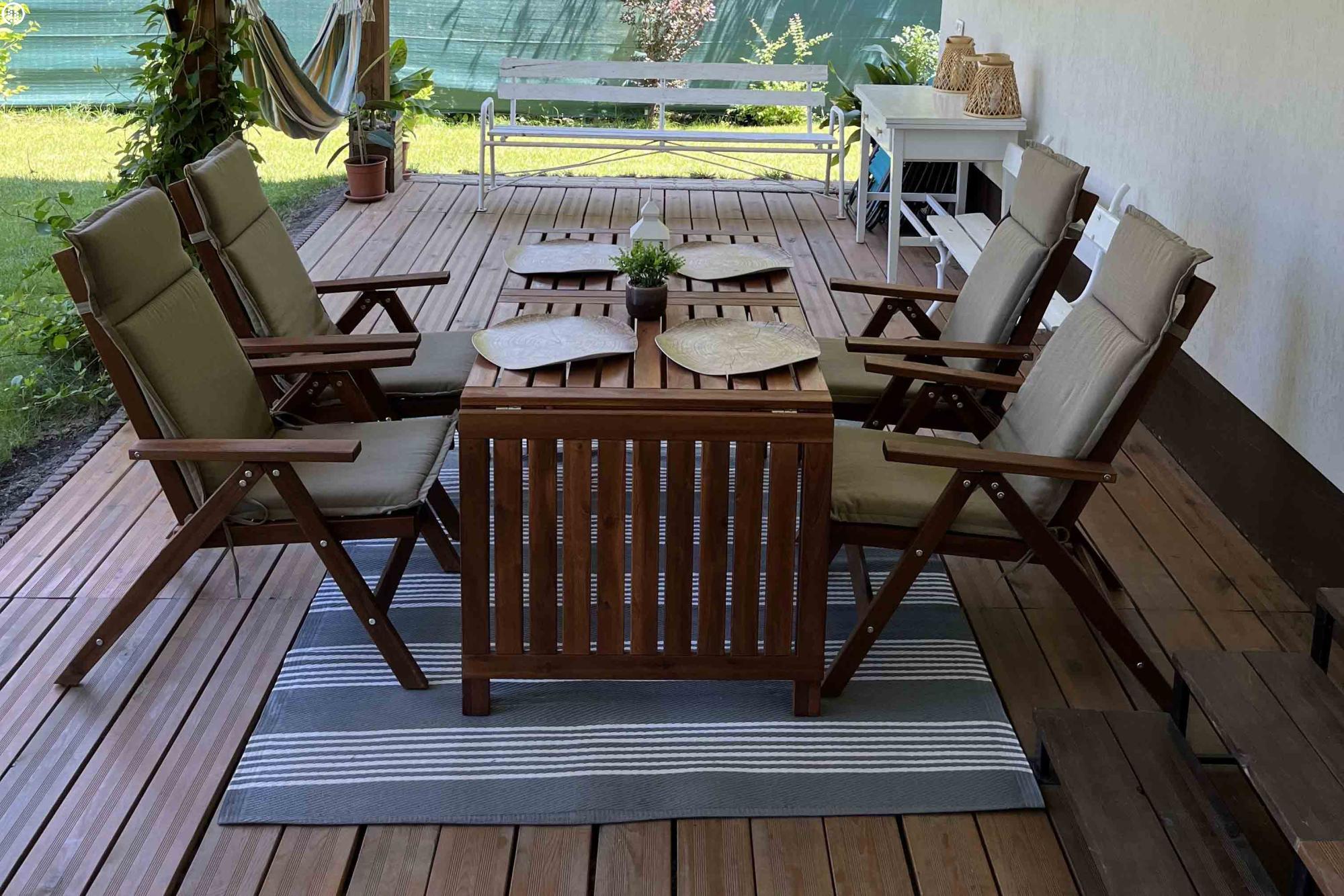 A kialakításnál legfőbb szempont a teljes kényelem és relaxáció volt: ha kis sem szeretnétek mozdulni, akkor a tágas nappaliból kilépve egyből a teraszon találjátok magatokat, ahol kényelmes függőágy, napozóágy, és kerti bútorok szolgáltatják a kényelmet. Amennyiben a kertet szeretnétek kihasználni a sportolásra, arra is megvan minden lehetőségetek: tollasütők, frizbi, és darts áll a rendelkezésetekre.