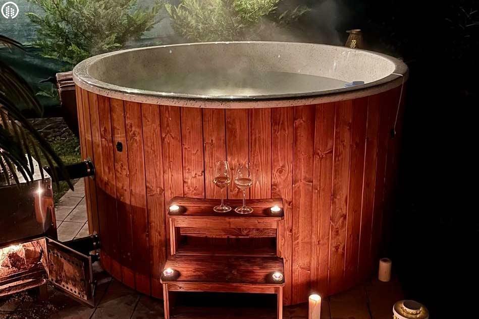 Lassuljatok le a dézsafürdőben egy finom pohár borral és élvezzétek a meghitt pillanatokat, miközben ropog a tűz a kályhában.