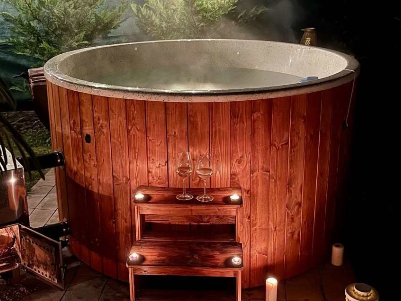 A kertben egy 6 fős fürdődézsa áll a vendégeink rendelkezésére, amely elektromosan és fával is egyaránt fűthető.