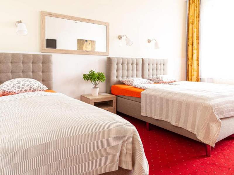 A családias szállodában pótágyazható szobák és apartmanok állnak rendelkezésre. A kétágyas szobák elegáns bécsi stílust kaptak és megtalálhatóak bennük a kényelmet szolgáló fő berendezések: hatalmas franciaágy, síkképernyős TV, íróasztal, vízforraló, telefon, wifi. A fürdőszobák tusolóval vagy fürdőkáddal felszereltek, valamint mindegyik rendelkezik hajszárítóval is.
