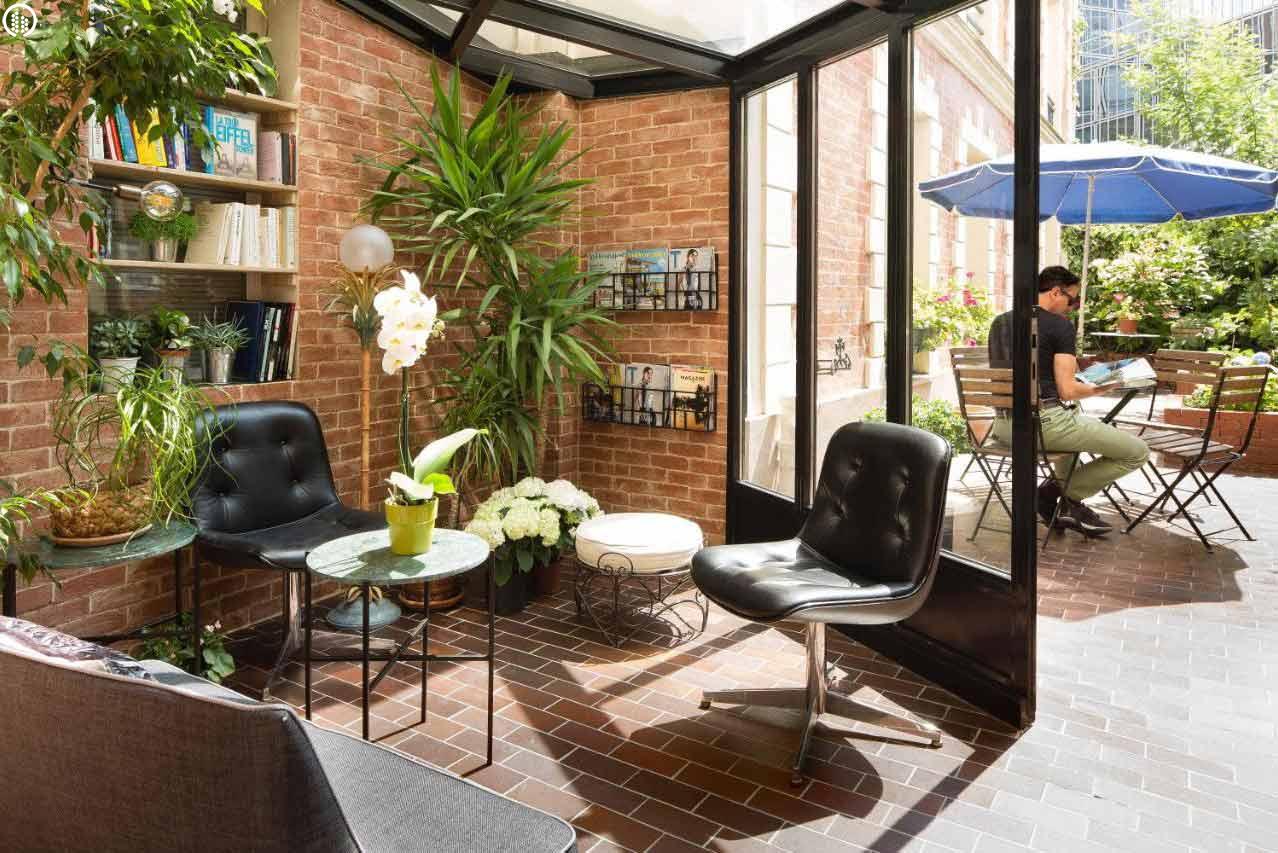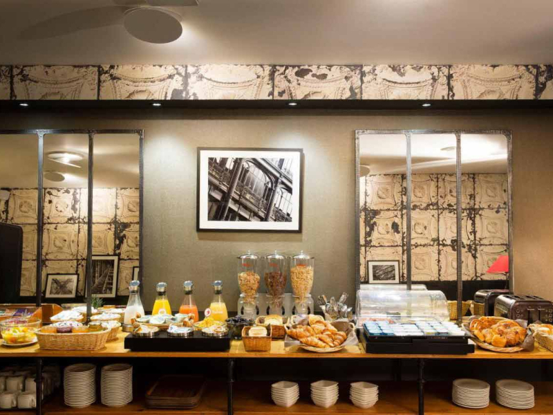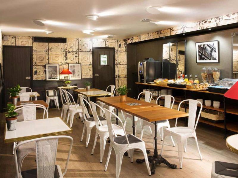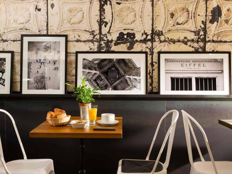 A Hotel Espace Champerret minden nap változatos svédasztalos reggelit kínál, melyet igyekeznek minden ízlésnek és étvágynak megfelelően tálalni. A reggelizőterem stílusa és berendezése Eiffel munkássága előtt tiszteleg. A reggeli minőségi termékek széles választékából áll, beleértve a kávét és más forró italokat, gyümölcslét, friss kenyeret, süteményeket, gabonaféléket, tejtermékeket, felvágottakat, sajtokat, gyümölcssalátát stb.