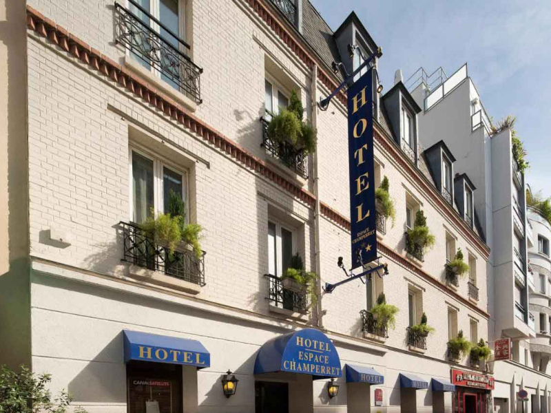 A Hotel Espace Champerret Párizs központjának szélén, mindössze párszáz méterre fekszik a metrótól, ideális helyszínt kínálva a főváros felfedezéséhez. A szálloda Levallois-Perret központjában található, számos üzlet, kávézó és étterem közelében. Élénk, mégis nyugodt, tökéletes környezetet kínál üzleti kirándulásokhoz, rövid városlátogatáshoz vagy családi vakációhoz.