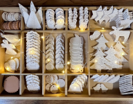 A voucher 1 fő 2 órás karácsonyfadíszítő workshopját tartalmazza, mely idő alatt 4 db karácsonyfadíszt készítenek. A foglalkozás ideje alatt biztosítanak kávét, teát és rágcsálnivalót, valamint minden szükséges eszközt.
