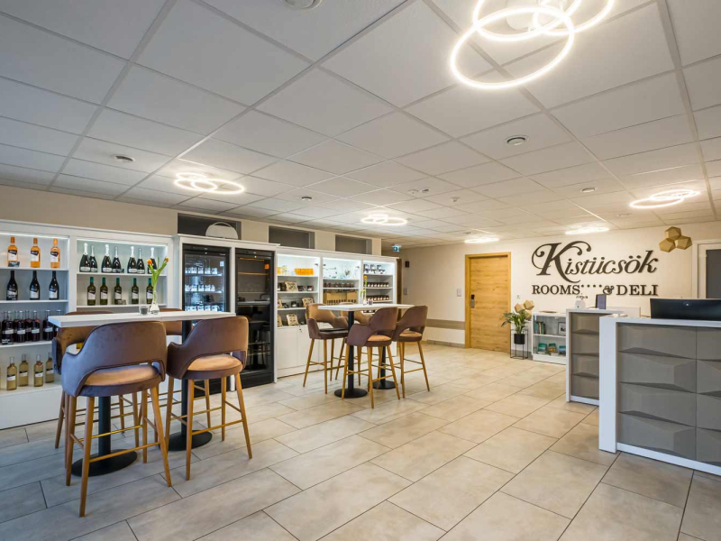 A recepción Delikátesz bolt kapott helyet, ahol a vendégek az étterem által készített saját márkás termékeket, különböző lekvárokat, pástétomokat, olajos nyurgapontyot, zöldségkrémeket, szörpöket és a Kistücsök borszelekció tételeit vásárolhatják meg. Az első emeleten a “Séfszoba” található, ami tematikus vacsora-, és boresteknek ad helyet, ahol a menühöz a szezonalitásnak megfelelő alapanyagokat használják fel és az elkészített menüsorokhoz helyi borokat kínálnak. A helyszín különlegessége, hogy a séfek munkáját egy kamera kíséri figyelemmel így a kedves vendégek a teremben található két televízió képernyőjén keresztül nézhetik a munkafolyamatot, közben beszélgethetnek a szakácsokkal.
