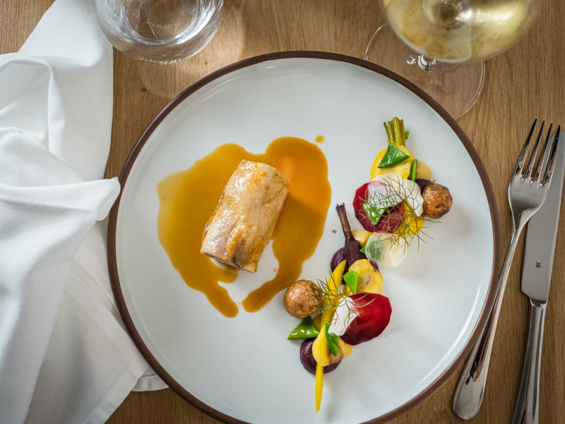 A szálláshelynek közvetlen összeköttetése van a Kistücsök Étteremmel, ahol egész évben, a hét minden napján fogadják a vendégeket. Az étlapon regionális és a szezonalitásnak megfelelő alapanyagokból készült ételek találhatók a Kistücsök nagy klasszikusok mellett. A szállóvendégek reggelijüket a "Séfszobában" fogyaszthatják el. A reggeli kínálatában a környékbeli termelők és az étterem saját készítésű termékei, ételei jelennek meg.