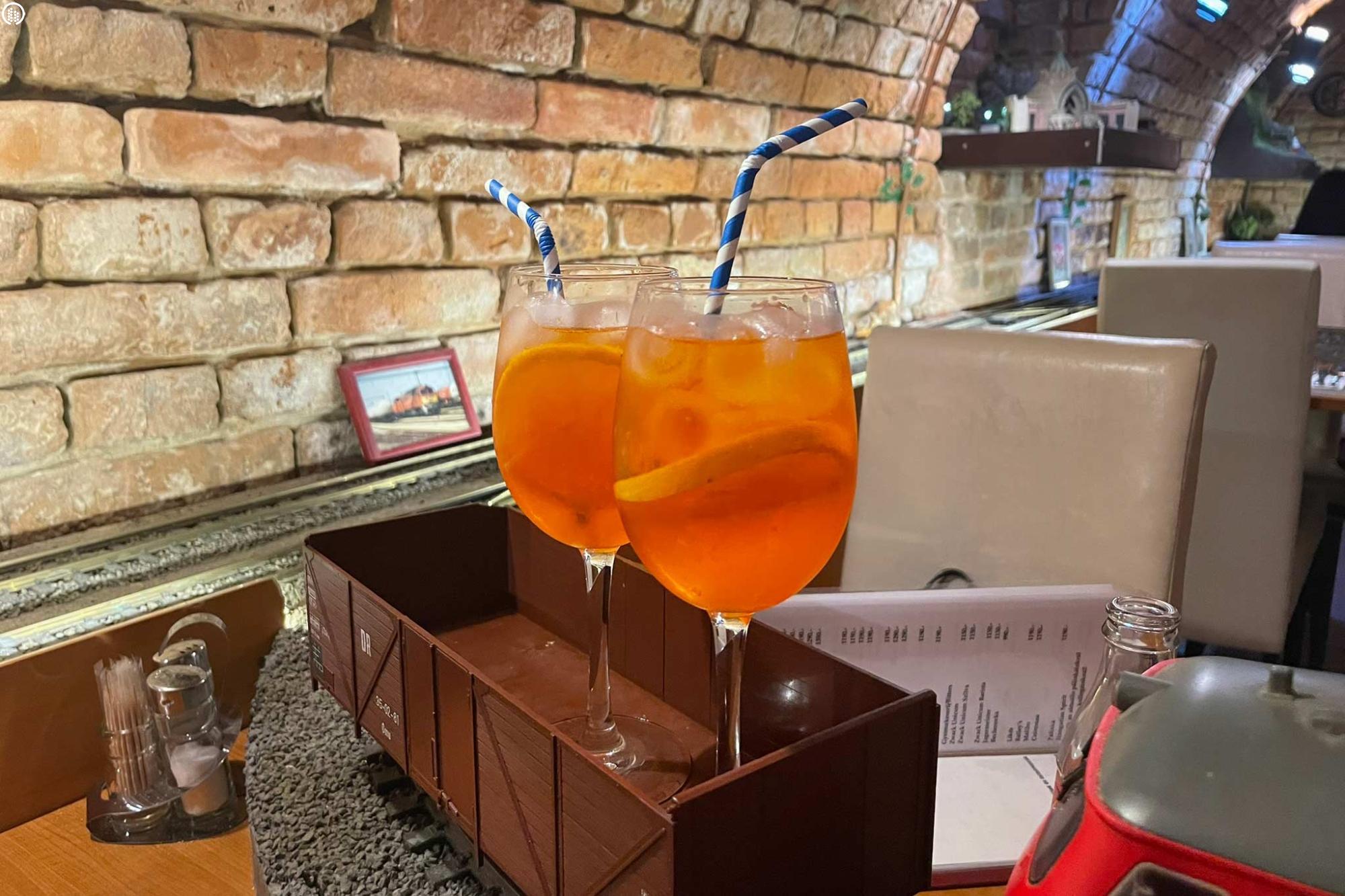 Az élmény vouchere tartalmaz 2 db 0,25 l üditőt ajándékba, melyet a kis vonat visz az asztalhoz.