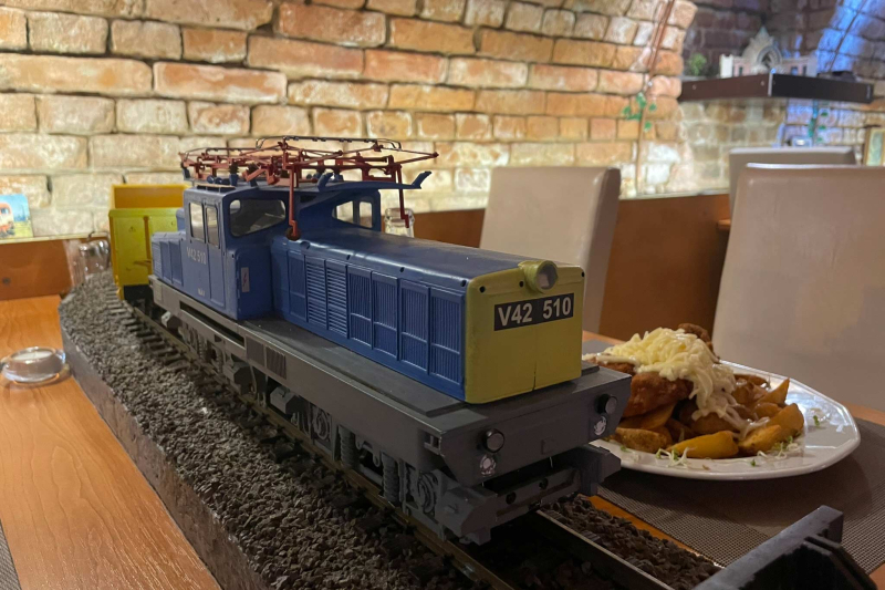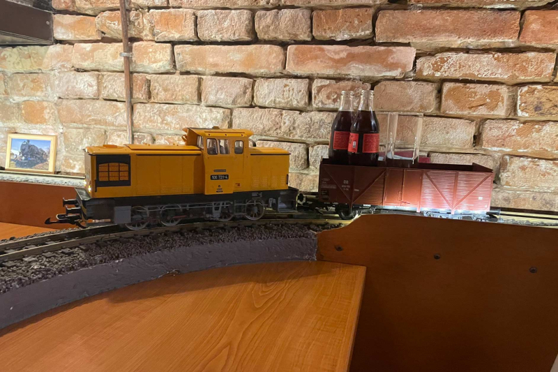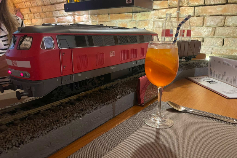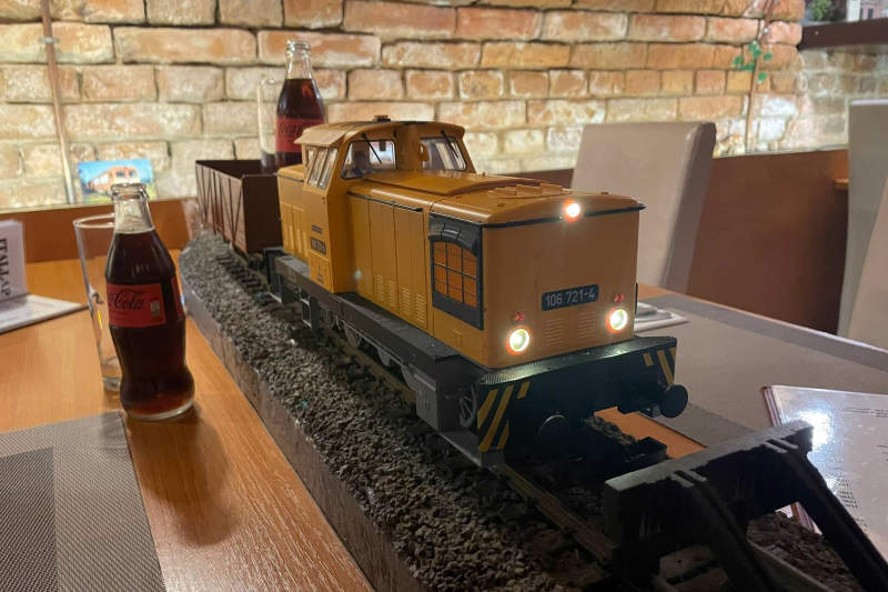 Ennek a cuki és igen egyedi étteremnek az a különlegessége, hogy italrendelés esetén a folyékony nedűt nem a felszolgáló személyzet hozza, hanem mini vasútmodellek szállítják ki. Az frissítőket 'berakodják' egy üres vasúti kocsiba és útnak indítják a megfelelő célállomáshoz. Az étterem egy hatalmas terepasztalhoz hasonlít, amit leginkább felnőttek részére találtak ki. Egy asztalnál ül mindenki, de mint egy igazi vasútvonalnál, itt is külön leágazások vannak az elszeparált asztalrészekhez. Ráadásul az étterem dekorációja, számos makett és diaráma közül néhány gombnyomásra életre is kel.