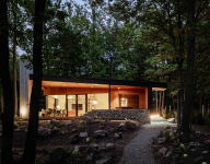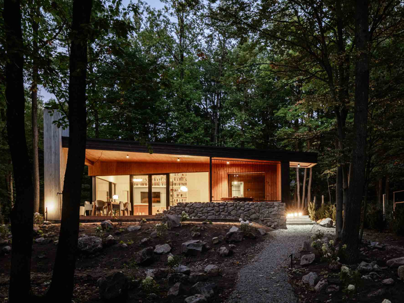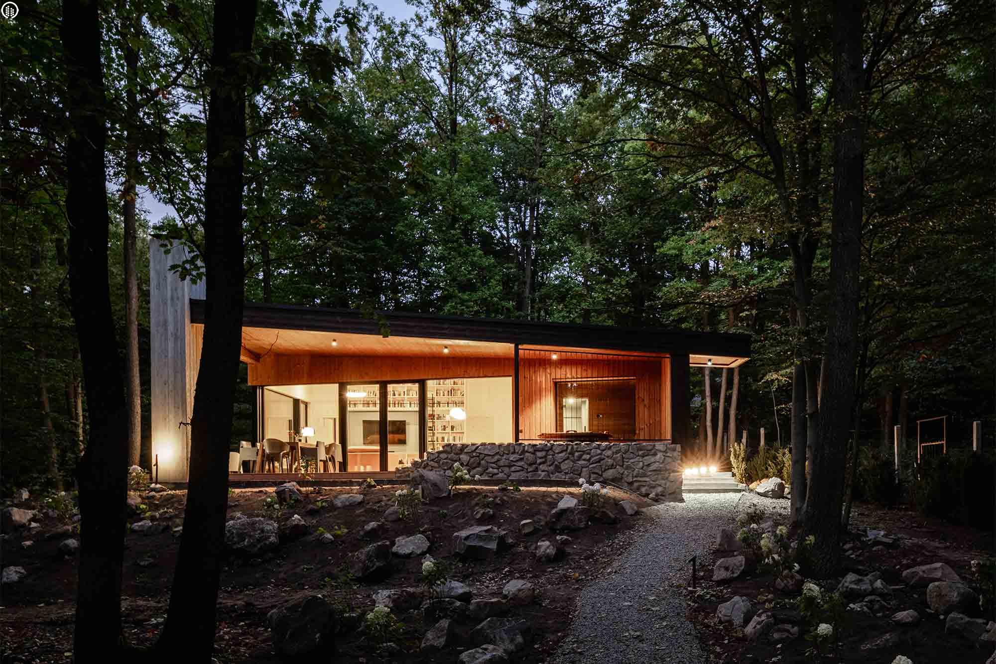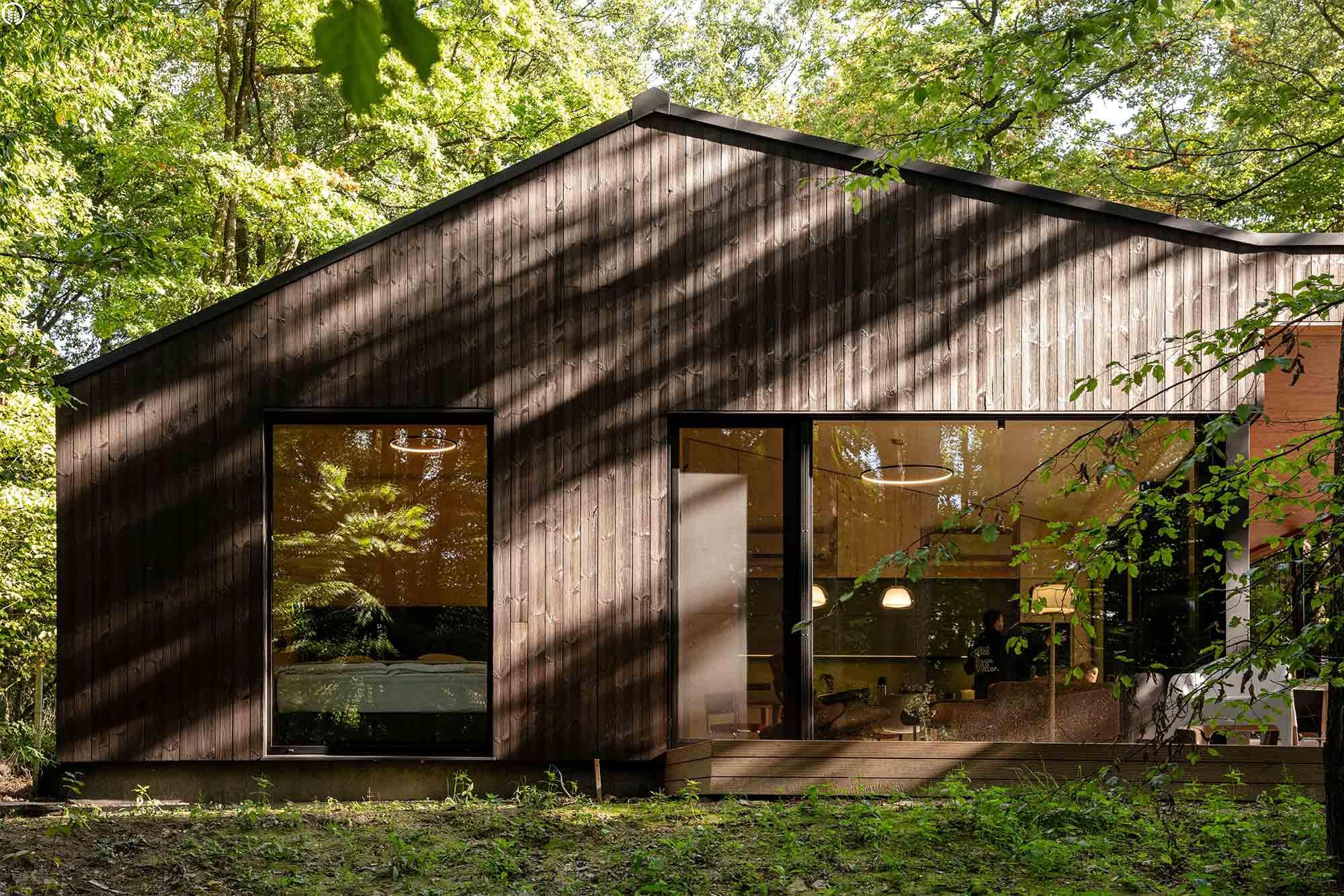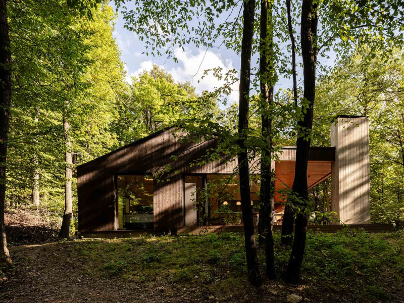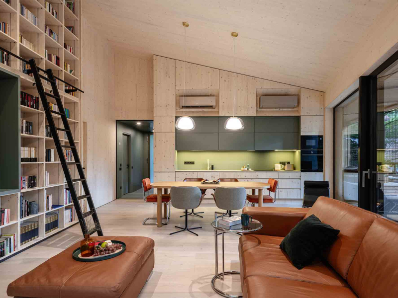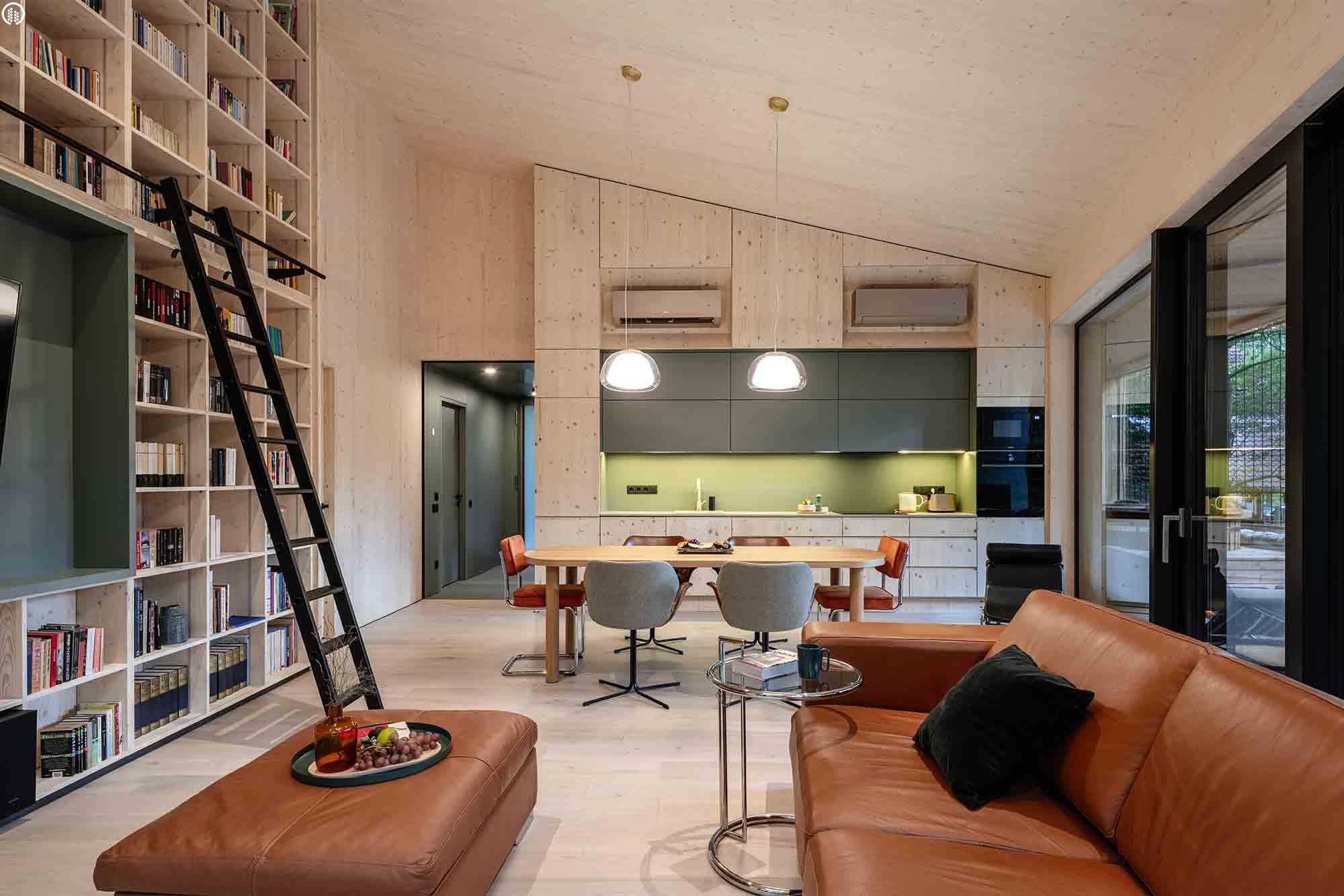 A luxus villa épület az erdő mélyén, egy túraútvonal mellett található, távol a városok és szomszédok zajától. Luxus a természetben - A prémium villa épület természetes anyagok felhasználásával épült egy erdő közepén, mégsem kell lemondanunk semmilyen kényelmi elvárásunkról.