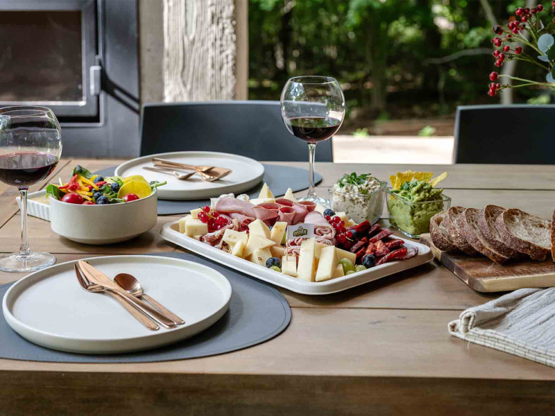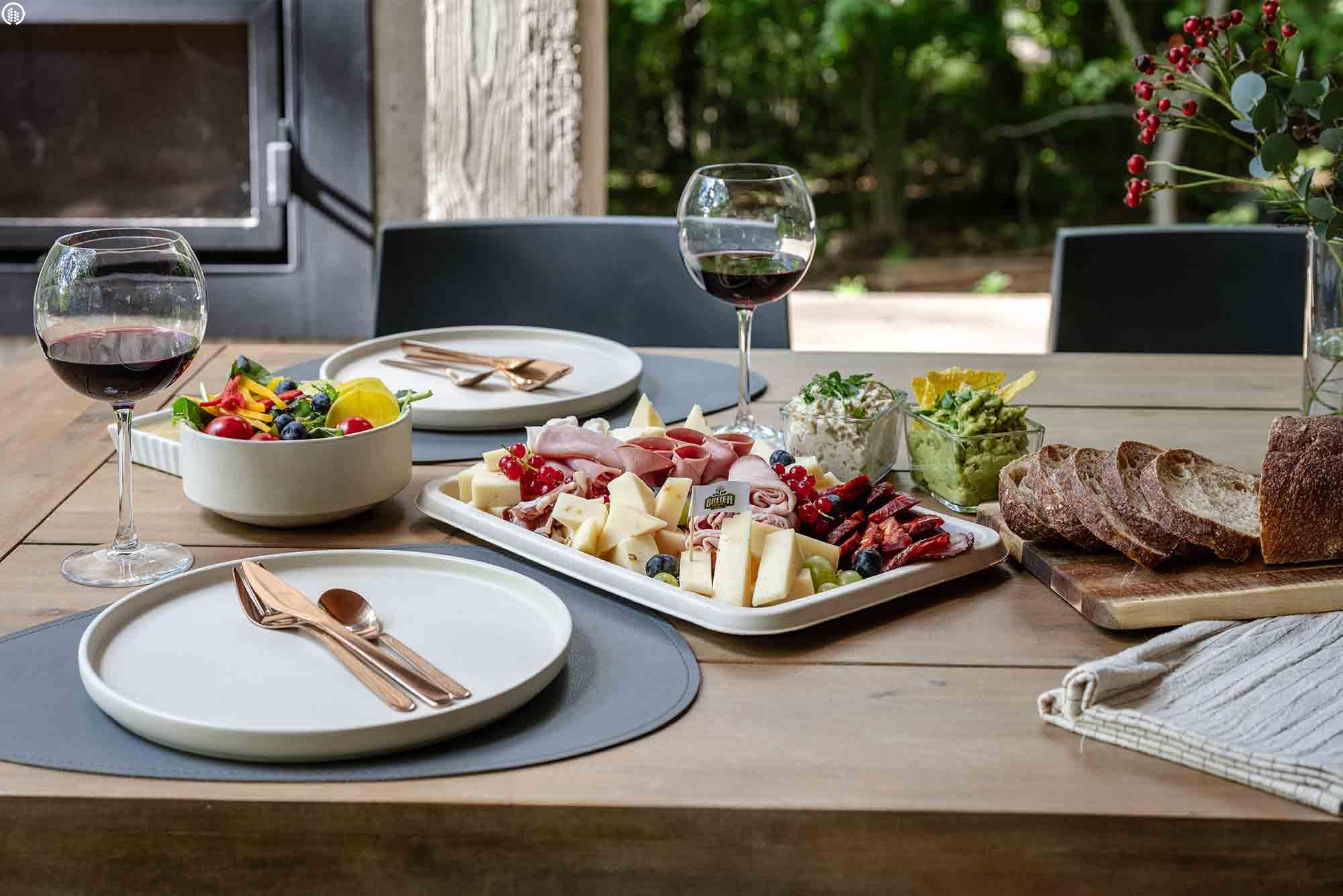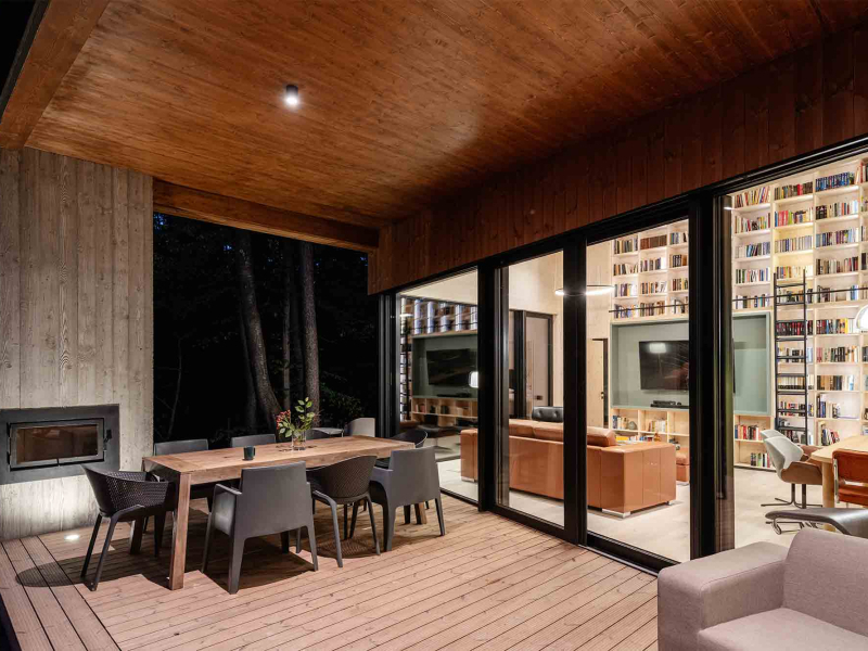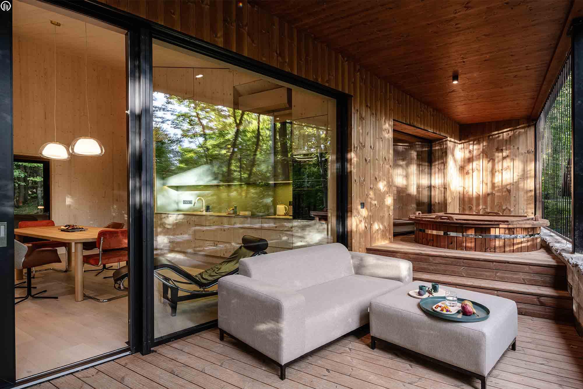 A 130 m2-es villa egy étkezőként is használható fedett terasszal és egy plusz fedetlen terasszal is rendelkezik. A fedett teraszról az idilli fürdődézsához juthatunk, mely igazi kikapcsolódást nyújt az erdő neszeivel és a fákkal körülöttünk.
