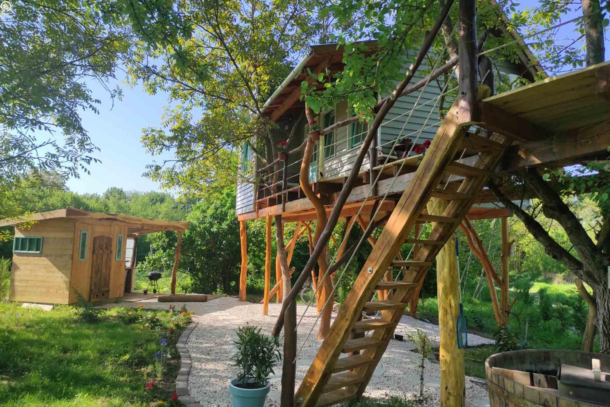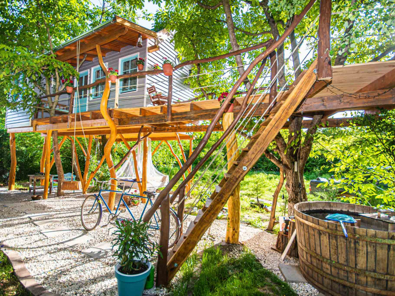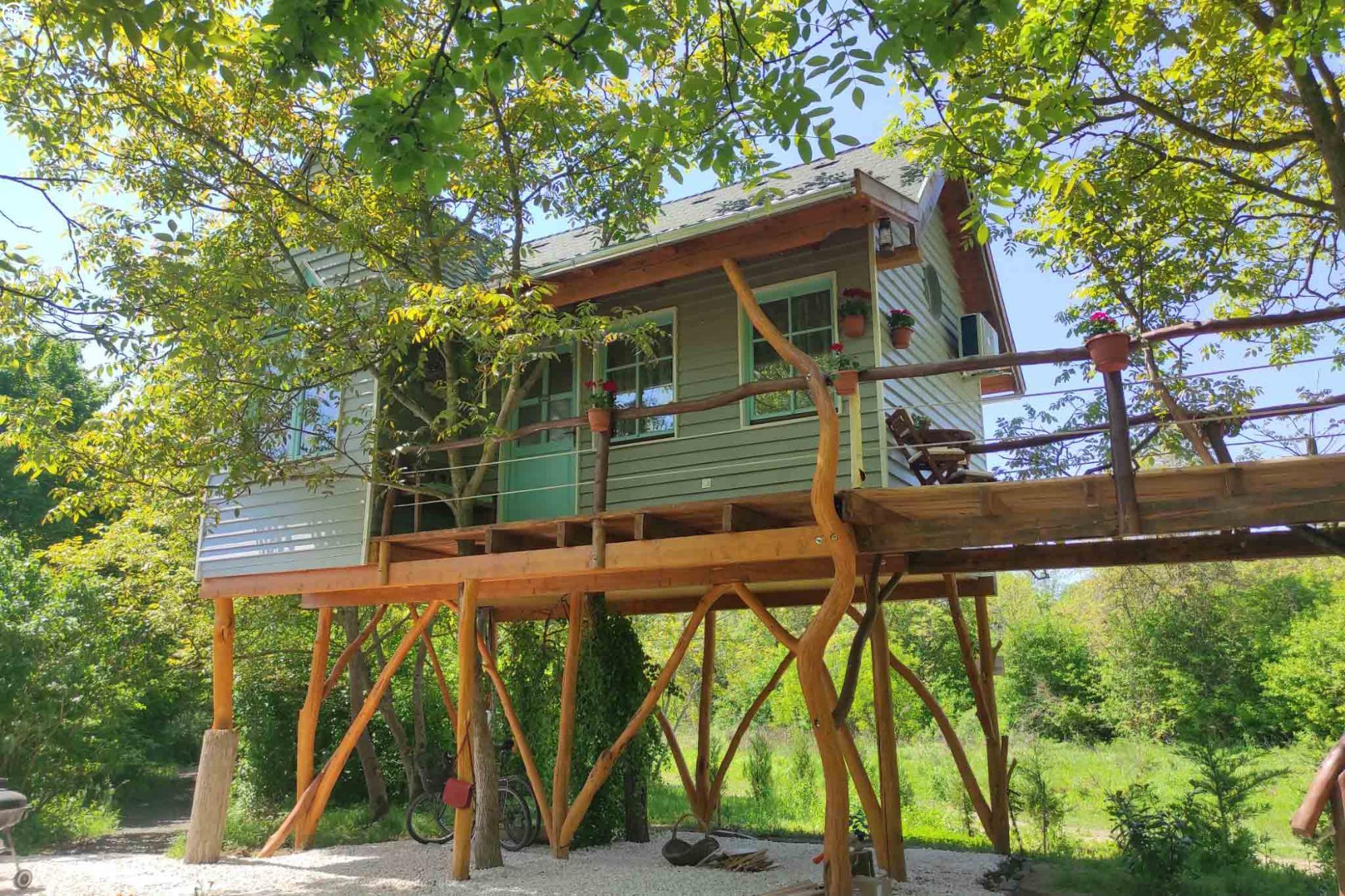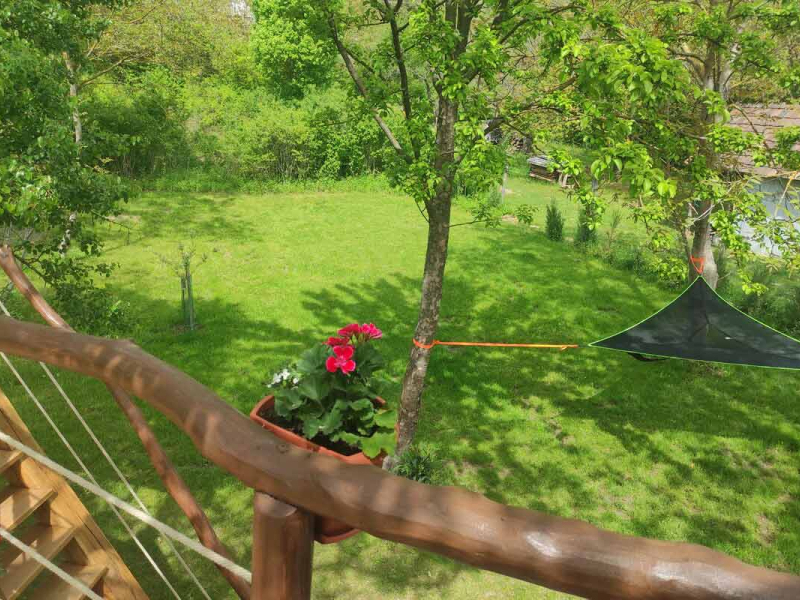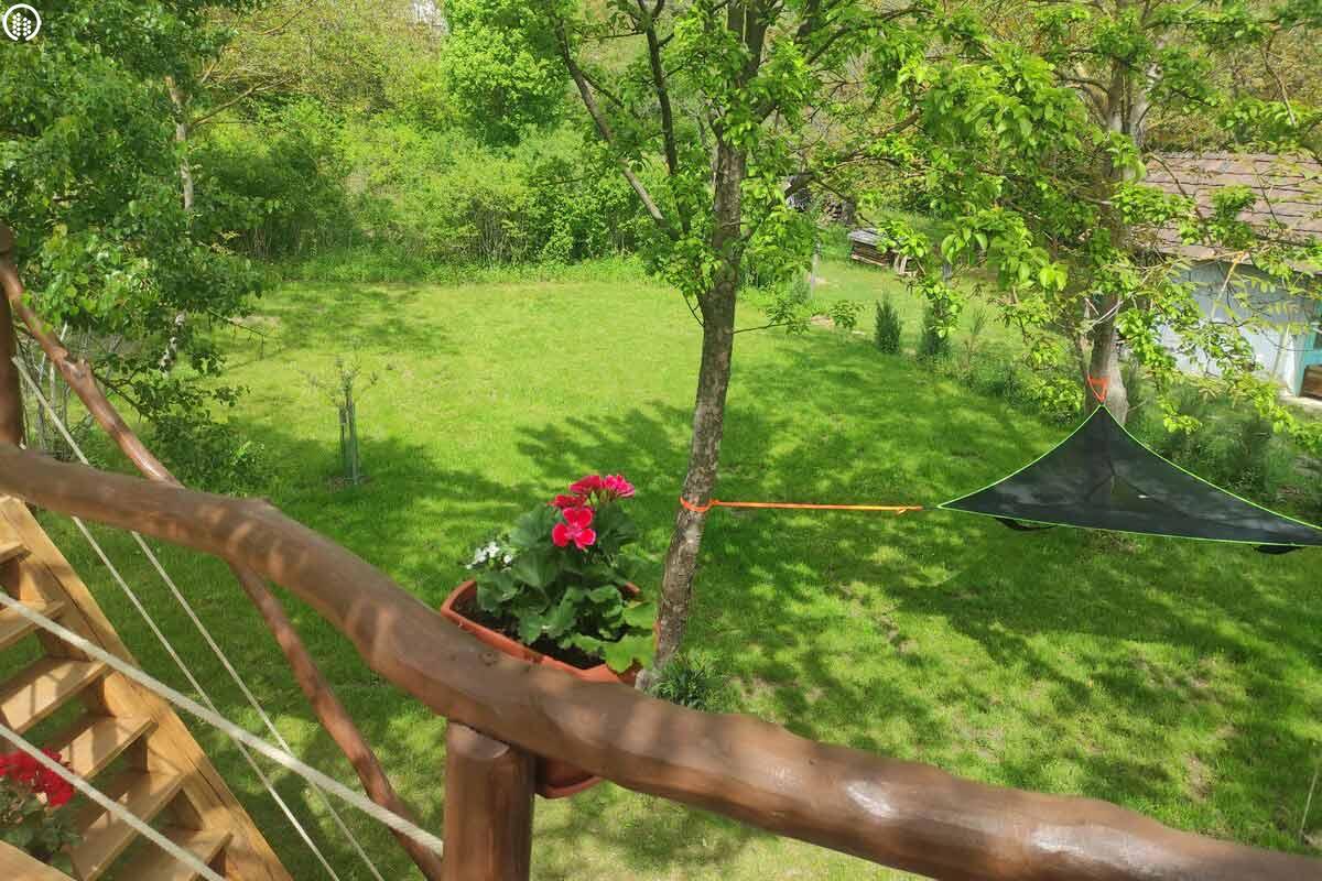 Igazi szerelmi fészek 3 méter magasan. A Dunakanyarban egyedülálló lehetőség, hogy élő fán tölthetitek az éjszakákat. Mindezt teljesen komfortos közegben, konyhával, fürdőszobával és fűtéssel, hűtő-fűtő légkondicionálóval felszerelt Lombházban. Élvezzétek egymás társaságát a levelek ölelésében a 25 m2-es teraszon, ahol még a nyári melegben is elviselhető az hőmérséklet. Az udvaron fatüzelésű, 5 illetve 2 személyes dészfürdő vár télen-nyáron, amihez egész évben biztosítjuk ingyenesen a tüzifát.