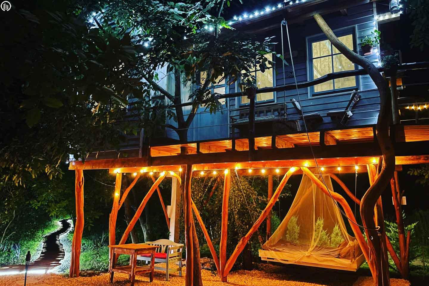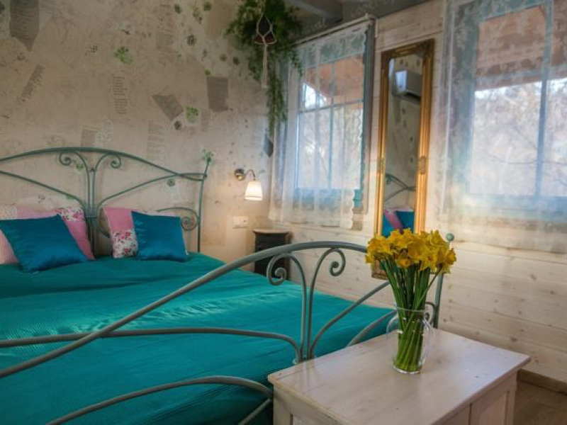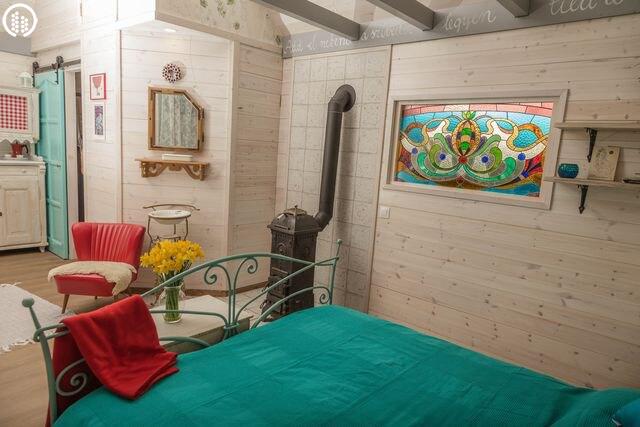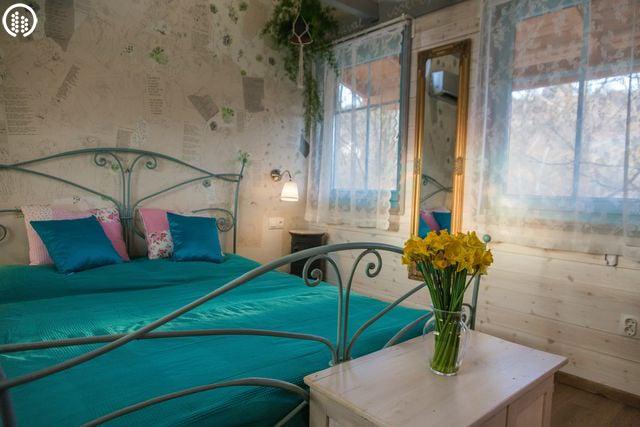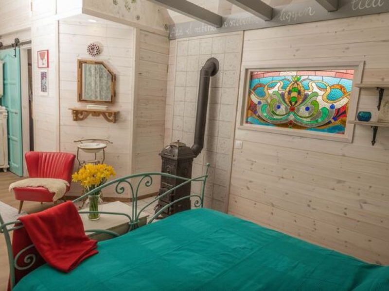 A ház központi részén elhelyezett kétszemélyes ágy hatalmas és kényelmes. Harmadik fő részére pótágy igényelhető. A fürdőszoba egyedi mozaikkal kirakott (mosdó, wc, zuhanykabin). A kiskonyha minden szükséges eszközzel felszerelt (mikrohullámú sütő, elektromos tűzhely, vízforraló, kotyogó, kenyérpirító, stb). Az udvaron fa tüzelésű dézsafürdő várja vendégeit, melyhez a tűzifát biztosítják, a szalonnasütéshez és bográcsozáshoz is rendelkezésre áll megfelelő mennyiségű fa. Grillezésre javasolják, hogy faszenet vigyetek! A lombház alatt függő franciaágy csak Rátok vár! Valamint a háromszögletű, 3 hatalmas fára kifeszített pihenőhelyen szintén jót ejtőzhettek.