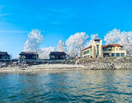 A dunai sétányon 4 db 2004-ben épült üdülőházban 8 db összenyitható, folyóra néző terasszal rendelkező, kétágyas, hangulatos apartman várja vendégeinket. Felszereltség: hűtő, síkképernyős TV, mindegyik apartman saját zuhanyzós fürdőszobával rendelkezik.