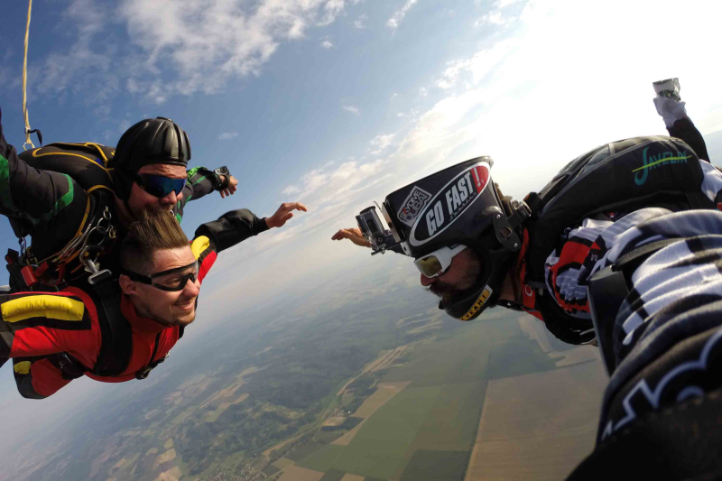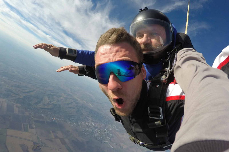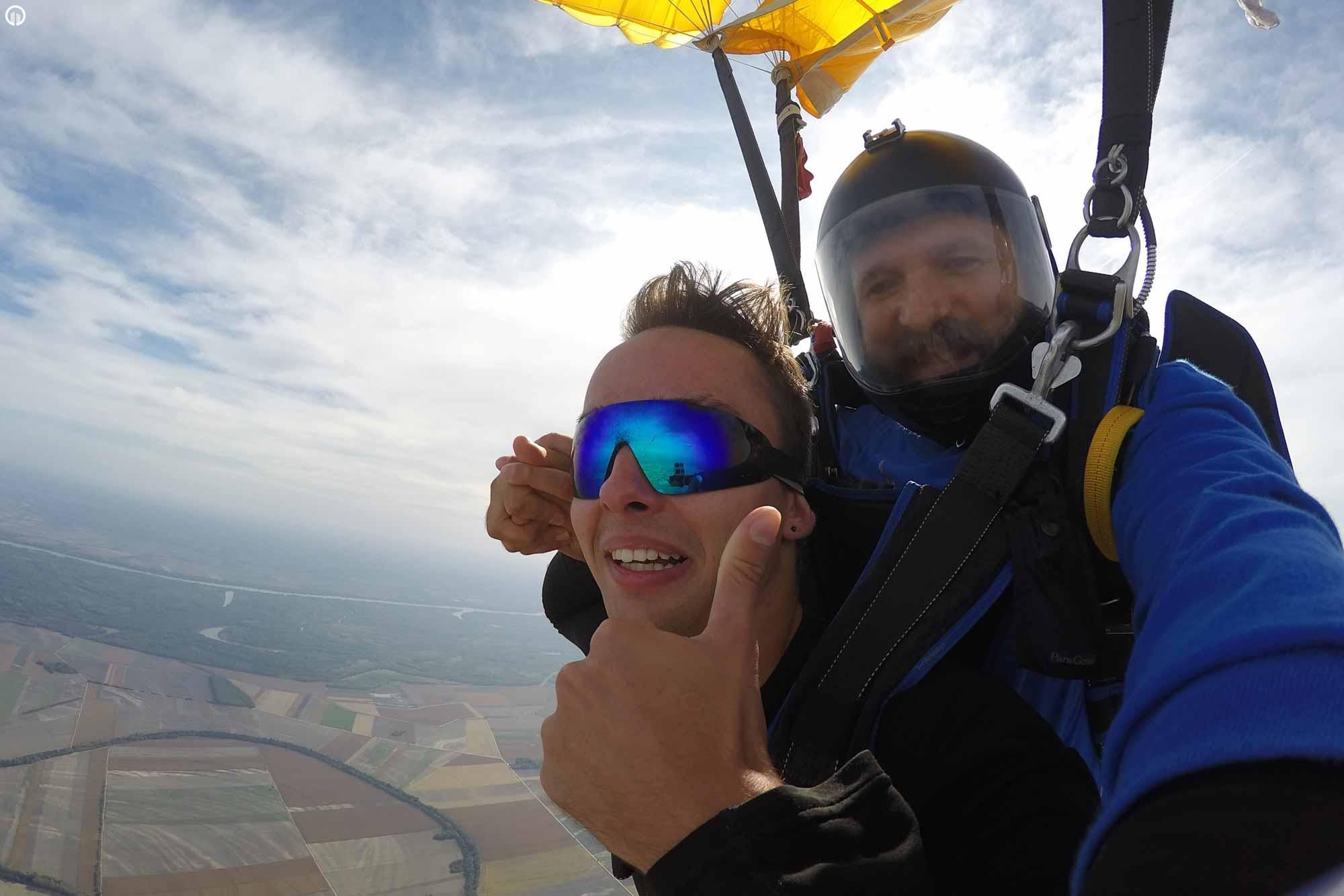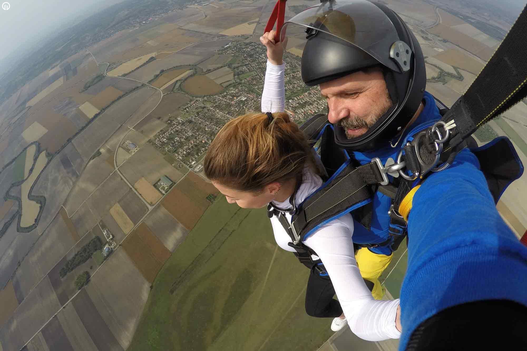Ha valami őrültségre vágysz ez egy hatalmas élmény! A gondolat, hogy működő repülőgépből 4.000 méter magasból egy ismeretlen emberre bízd az életed, először valószínűtlennek tűnik. A szád kiszárad, az adrenalin felfokozza az érzéseidet és a gyomrod a félelem jeleit mutatja. Az érzés hihetetlen, az adrenalin az egekben és lassan azt is elhiszed, hogy valóban tudsz repülni. Pörgés, forgás majd kicsit stabilabban már nézelődni is tudsz. Meglepve látod majd, hogy a föld bizony gyorsan közeledik. Mielőtt tényleg közel jönne, egy rántást érzel és már nyitott kupolával folytatódik az út. Ha van kedved, akár az ernyőt is irányíthatod vagy folytathatod a pörgést-forgást egészen addig, amíg valóban közel jön a föld.