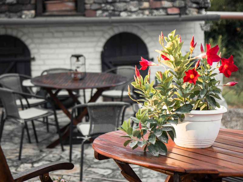 A pihenni vágyók számára kültéren étkező bútorok, napozóágyak és pihenősarok áll rendelkezésre.
